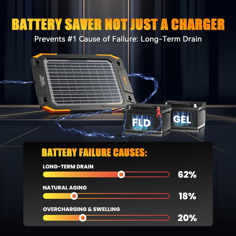 - Never Face a Dead Battery Again!Keep your car, boat, or RV battery charged even in harsh winters or scorching summers with BALDR's 13W high-wattage solar charger. Its MPPT technology delivers 30% more power than standard panels, ensuring your engine starts instantlywhether it's a frozen morning (-40F) or a beachside heatwave (185F)