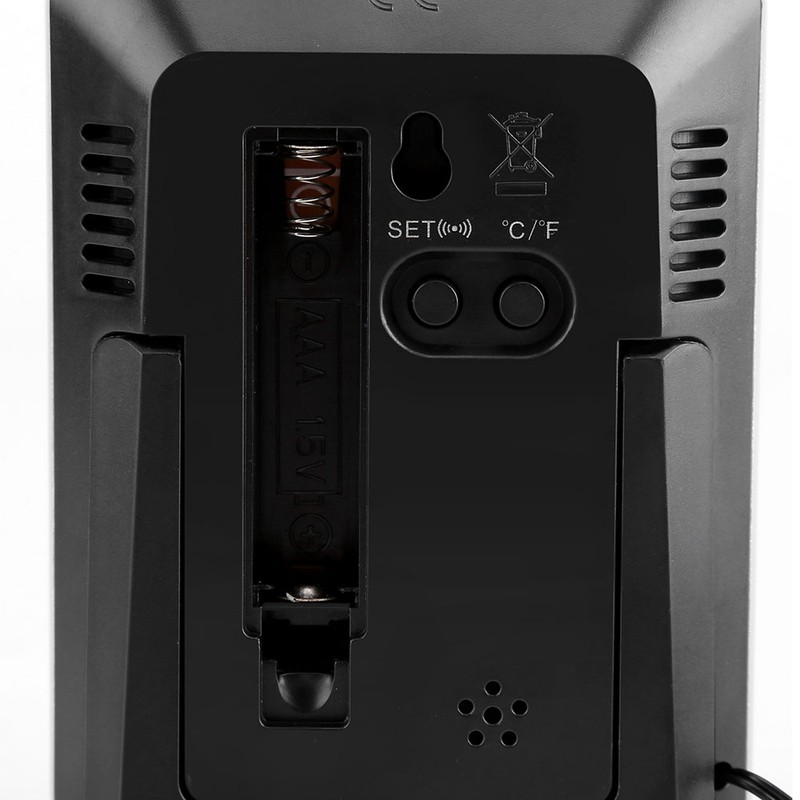 1、Brand new and high quality multi-functional digital thermometer clock with alarm and snooze function 2、Large digital LCD screen displays the current time, temperature, trend and Max/Min records. Easy to read the number 3、Hours, minutes and seconds display. Silent desk electronic alarm clock, keep you a good sleep. Time can be shifted between 12:00 and 24:00 4、With 10-foot wired weatherproof sensor probe to measure and then display the indoor and outdoor temperature on the screen providing much comfort for your life 5、Temperature trend arrows indicate whether temperature is rising or falling. °C and °F change freely for easy reading. Easy to use. Can be placed on the table/desk or wall-mounted