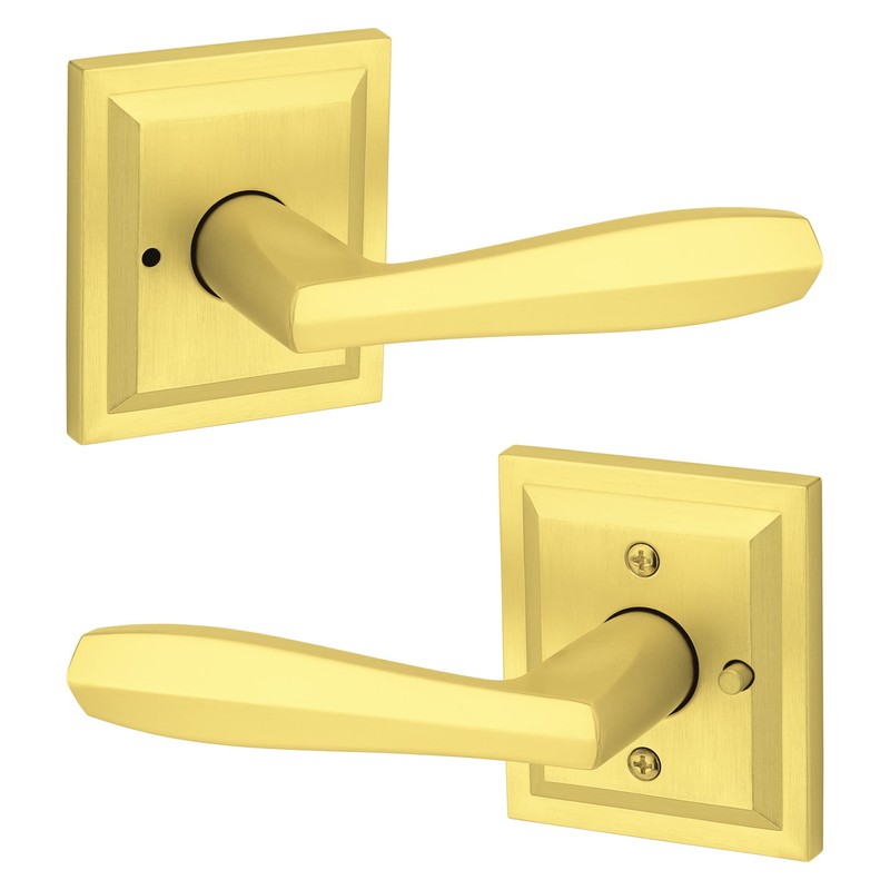 Baldwin Torrey Pines, Interior Privacy Door Handle Reversible Lever for Bedroom/Bathroom, Keyless Door Lock, in Satin Brass