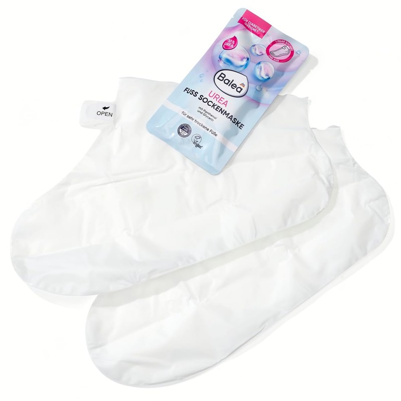 - Balea Urea foot sock mask: for damaged skin on the feet. With panthenol, avocado oil and moisturising active complex. Contains 10% urea. Product features: vegan, vegetarian.