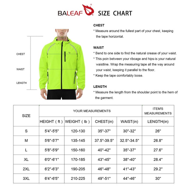 baleaf baleaf Mens Cycling Rain Jacket Windbreaker Waterproof Running Gear Golf Mountain Biking Hood Lightweight Reflective Yellow L