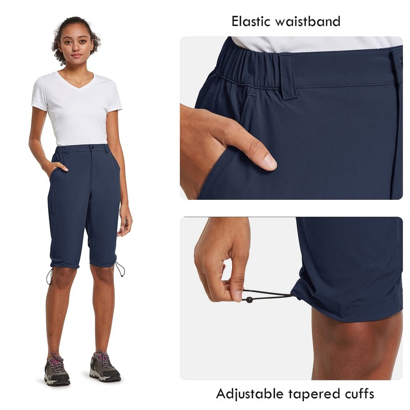 BALEAF - Bermudas largas hasta la rodilla para mujer, para verano, senderismo, golf, campamento, elástico, ligero, nailon de secado rápido, Azul, XXL