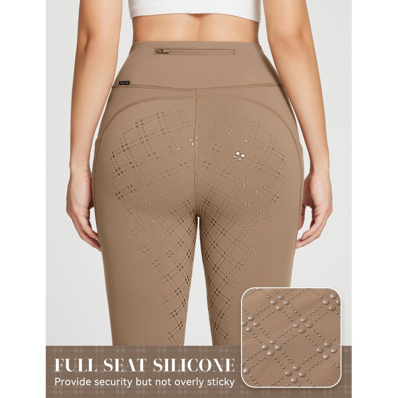 BALEAF Ladies Winter Jodhpurs Fleece Riding Breeches Full Seat Riding Breeches Zip Pockets Leggings, brown