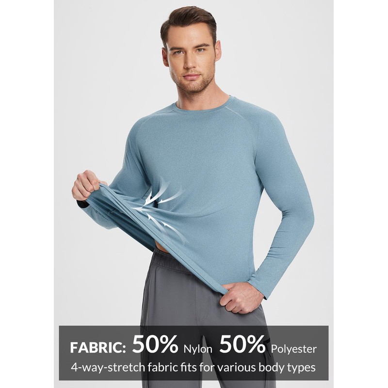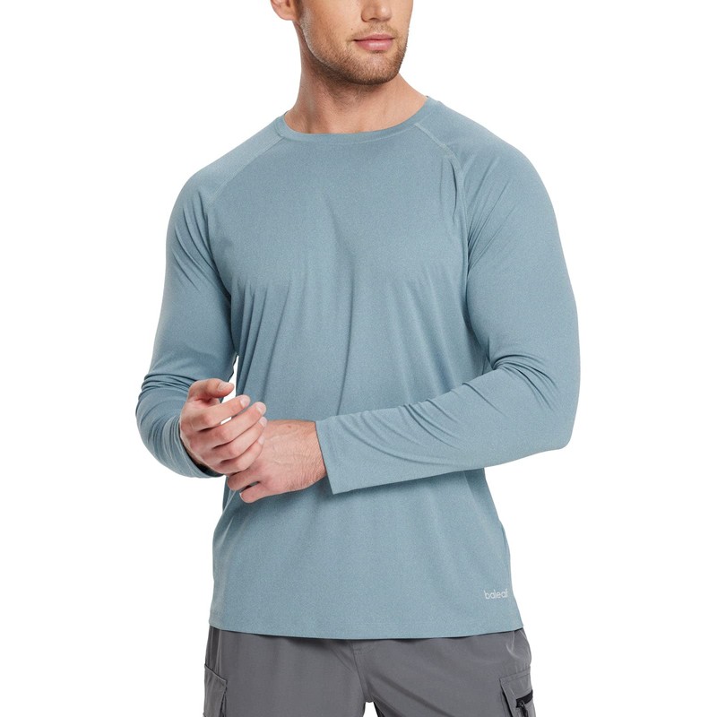 baleaf Men's UPF 50+ Long Sleeve Shirts Soft Rash Guard Breathable Lightweight Workout Running Hiking Tops Light Blue S