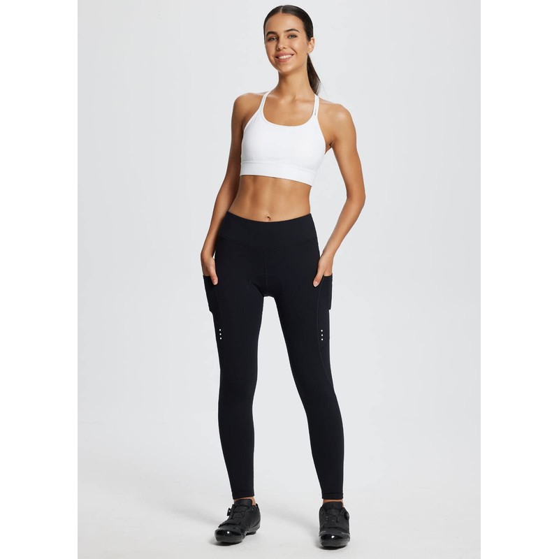 - Reflective elements on the calves and thighs boost your visibility, two handwarmer pockets are also deep enough to hold a phone comfortably, as well as snacks. These womens padded bike pants with lines design are flattering and stylish yet modest and functional.