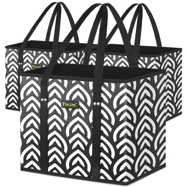 BALEINE 3Pk Reusable Grocery Bags, Foldable Shopping Bags for Groceries with Reinforced Bottom & Handles (Honeysuckle)