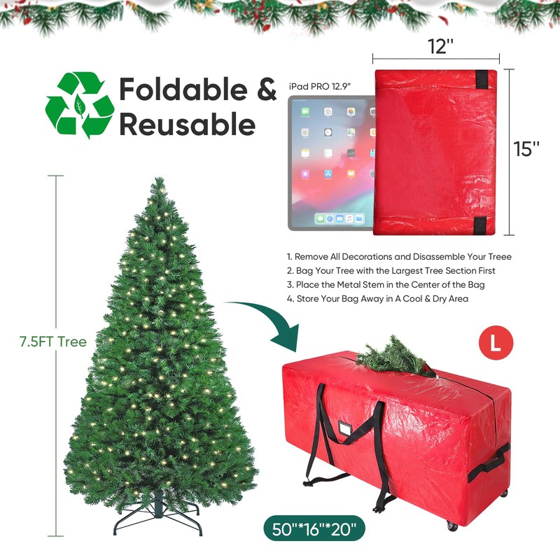- [FOLDABLE] This Christmas tree bag folds up effortlessly for easy storage on a shelf or in any compact space during the holiday season. Its practical design provides a space-saving solution for all your storage needs.