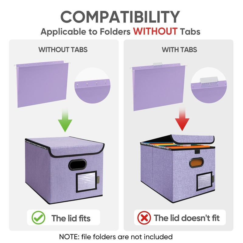 - [UNIVERSAL SIZE] Our file box with lid fits letter-sized files. It is designed for efficiency and functionality, with its smooth PVC slide rails on both sides, you can effortlessly slide file folders for easy access and neatly arranged. The lid fits snugly on the box after hanging folders. (NOTE: file folders are not included)