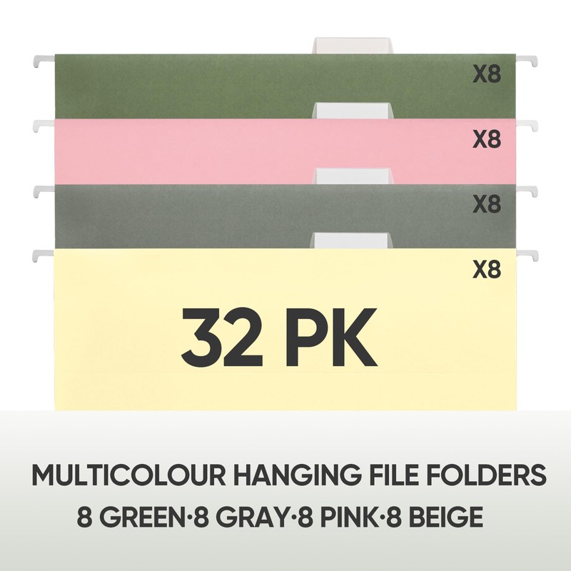 - Multicolor: Available in a multicolor set with four vibrant colors per pack: green, gray, pink, and beige; These hanging files can be compatible with the hanging file organizer, such as file box and file cabinet