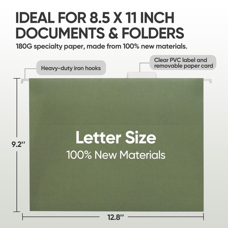 - Efficient Sorting: These letter size hanging file folders come in flexible packs of 8, 16, or 32; They measure 9.2 x 12.8 inches (W×L), ideal for holding 8.5 x 11 inches documents and folders