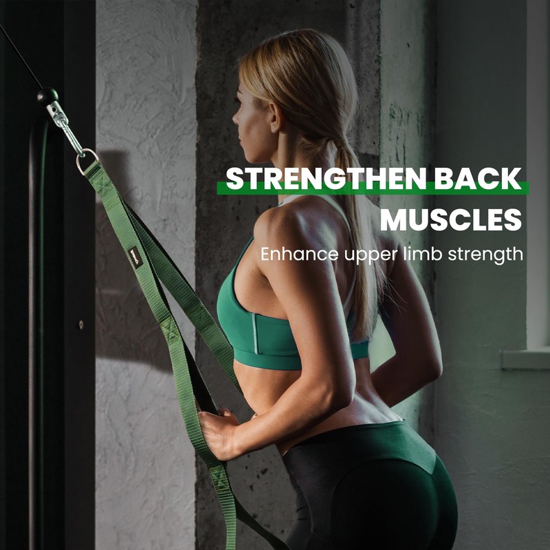Achieve various exercises such as face pulls, tricep pushdowns, overhead tricep extensions, bicep curls, seated row. Convenient to carry, suitable for home or gym use.