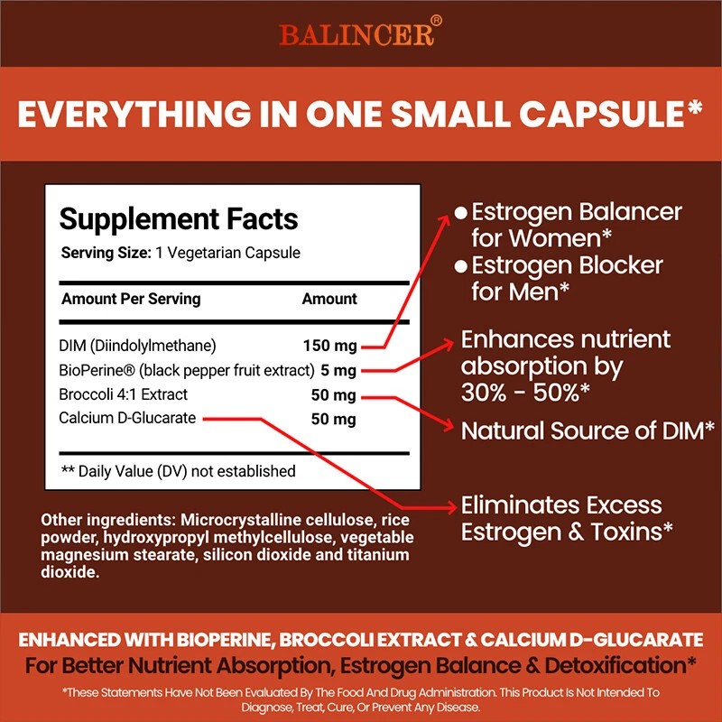 Balincer DIM Enhanced capsule containing bioflavonoids - estrogen balance 120 Capsules