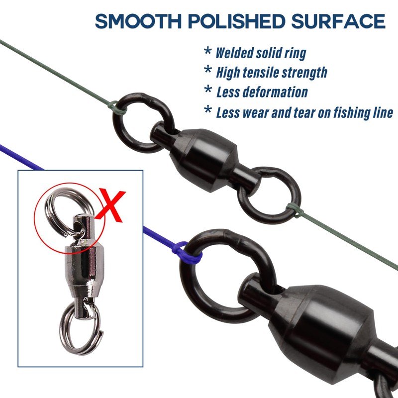 - 【SMOOTH】 - Ball bearing fishing swivel loaded for smooth action. More smooth in rotation. Smoothly rotatable ball bearing swivel prevents twisting of threads to the minimum