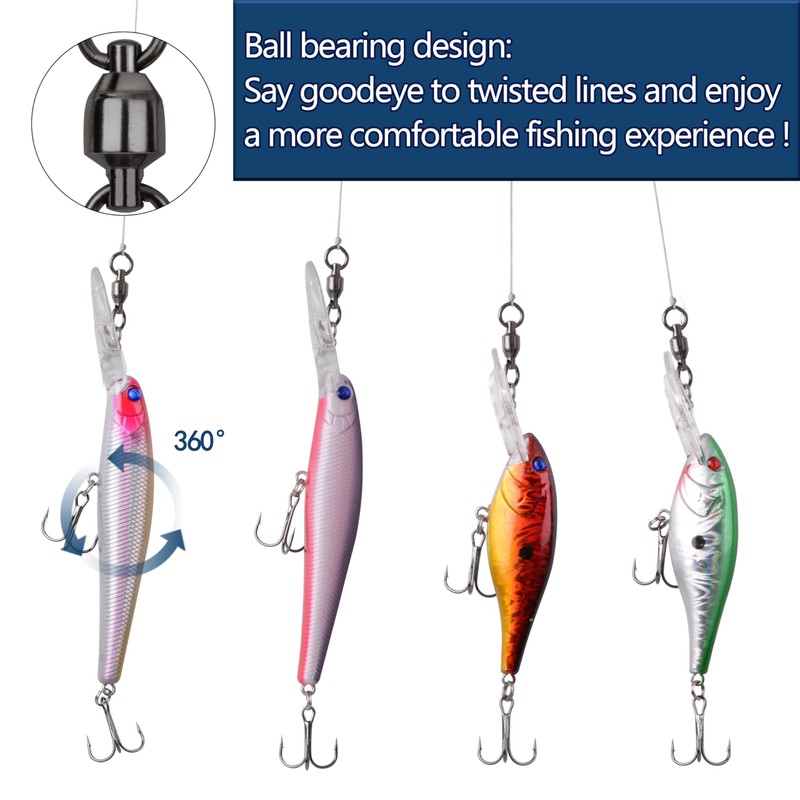 - 【SMOOTH】 - Ball bearing fishing swivel loaded for smooth action. More smooth in rotation. Smoothly rotatable ball bearing swivel prevents twisting of threads to the minimum
