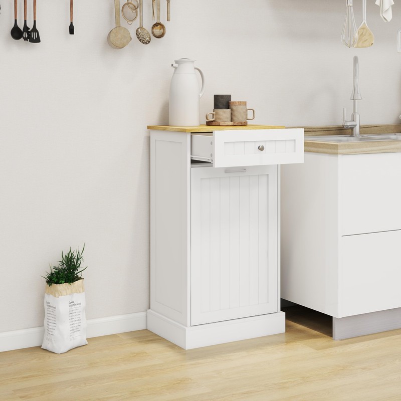 Ball & Cast Tilt-Out Trash Cabinet Kitchen Trash Cabinet with One Drawers,Multifunctional White Hidden Garbage Can Cabinet, Wooden Trash Can for Kitchen, Bathroom and Living Room,White