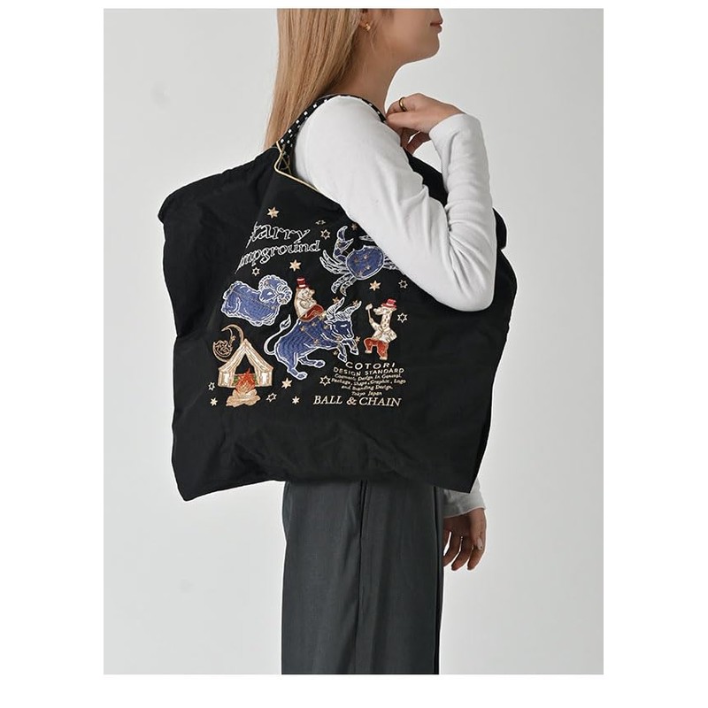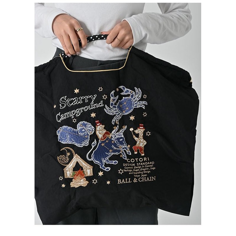 Ball & Chain 321106 (L, C.STARRY/BLACK) Ball & Chain, Authentic Product, Large Size, Starry Sky, COTORI Collaboration Shopping Bag, Black