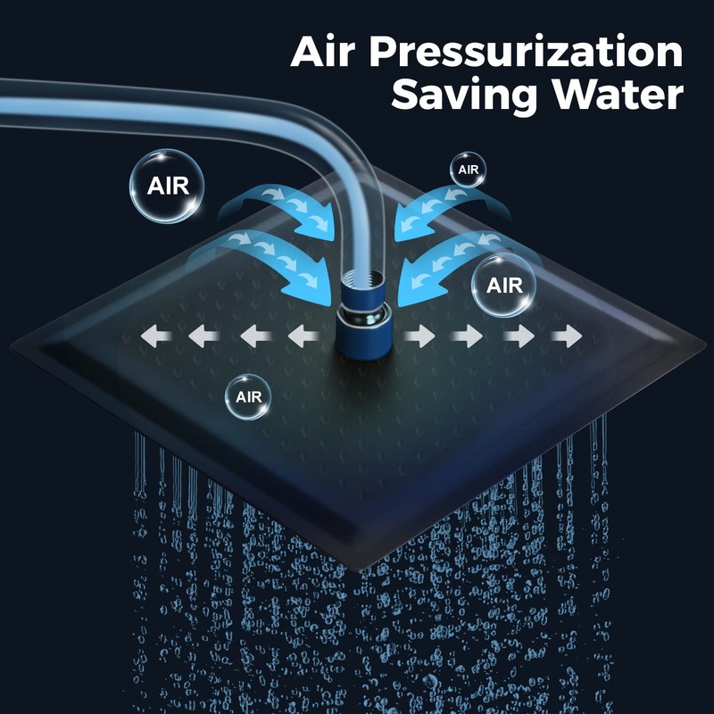 - Air injection technology: ultra-thin design and air injection technology to increase water pressure and simulate natural rainfall, shower heads ensure a rain shower experience even at low water pressure.