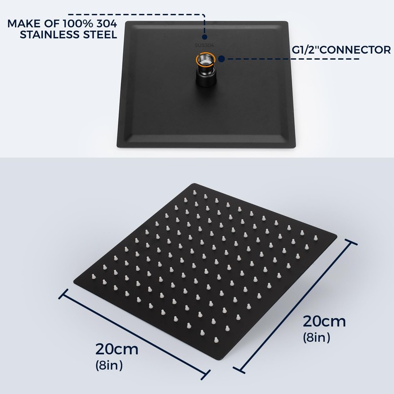 - Anti-limescale nozzles: 8 inch shower head rain shower has an 81 anti-limescale nozzle to prevent the formation of limescale, and dirt can be easily removed from the silicone nozzles. (20X20 cm)