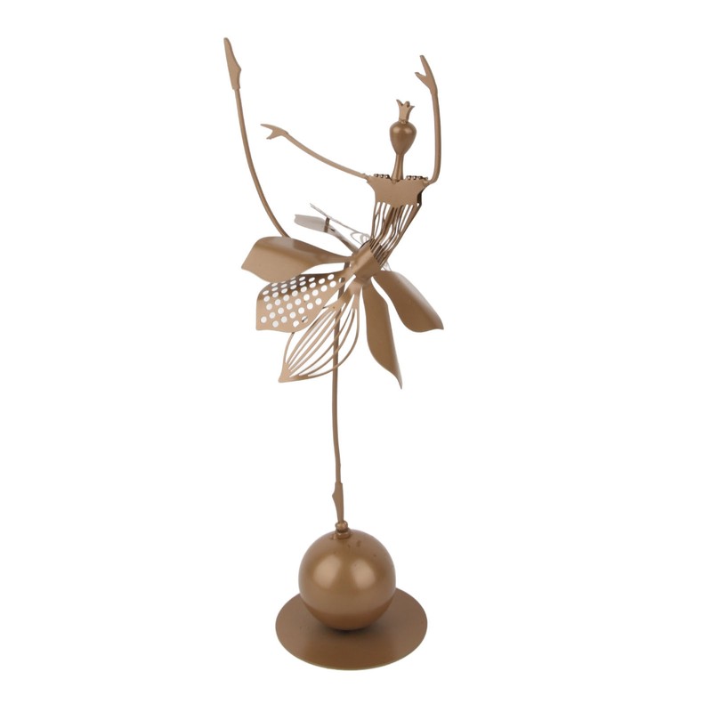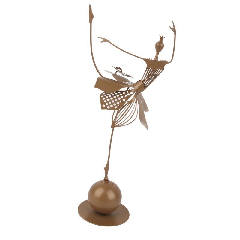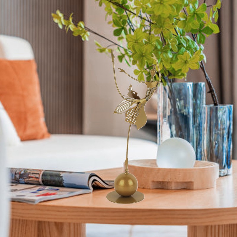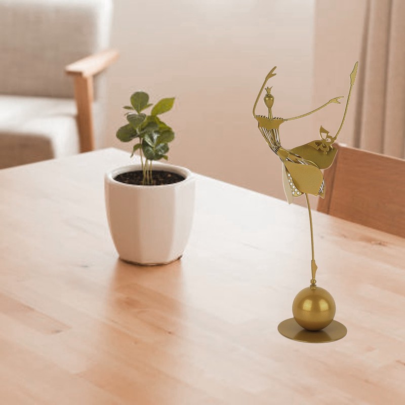 Ballerina Figurine Elegant Lines Gold Color Stable Base Strong Metal Ballet Dancer Sculpture for Family Office Party Papillon On Skirt