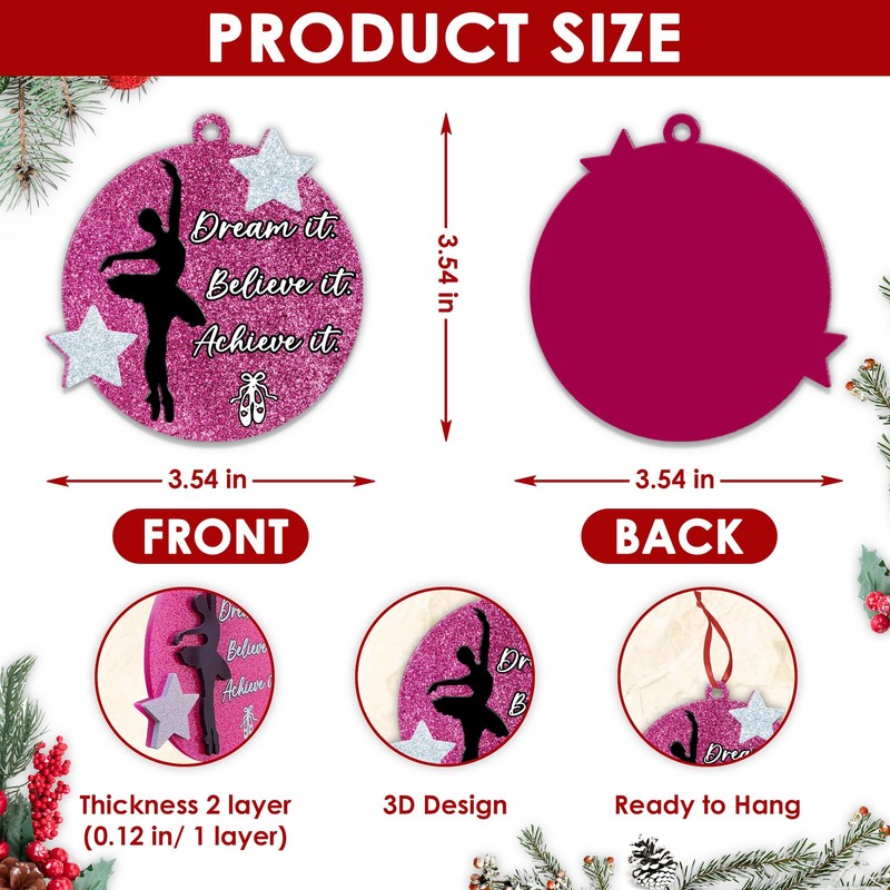 Ballet Christmas Ornaments, Ballerina Ornaments for Christmas Tree, Ballet Dancer & Ballet Shoes Ornament Keepsake, Xmas Gifts for Ballet Girls Lovers Athletes Coach, Dream It Believe It Achieve It