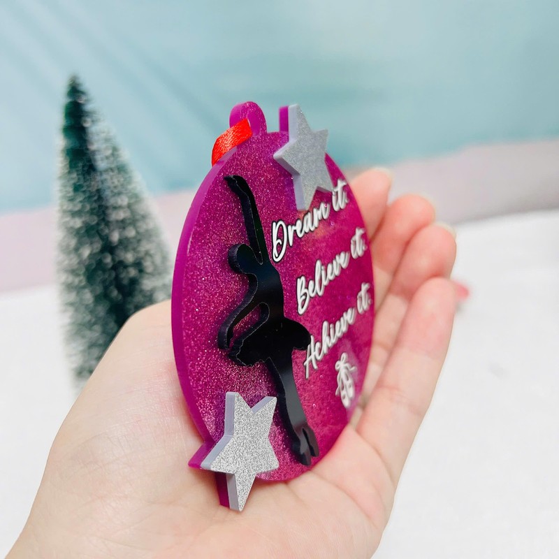 • Premium Material: Our Ballet Ornament for Christmas Tree Holiday Decor is made from twinkle glitter acrylic, featuring vibrant patterns on the surface. The ornament is printed using sublimation technology, ensuring a colorful and lasting finish.