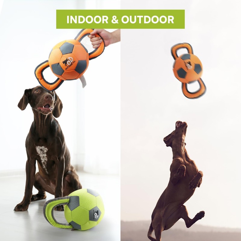 - Durable: A durable and fun dog toy designed for large breeds. The ball features two handles for easy tug-of-war games, enhancing your dog's playtime experience.