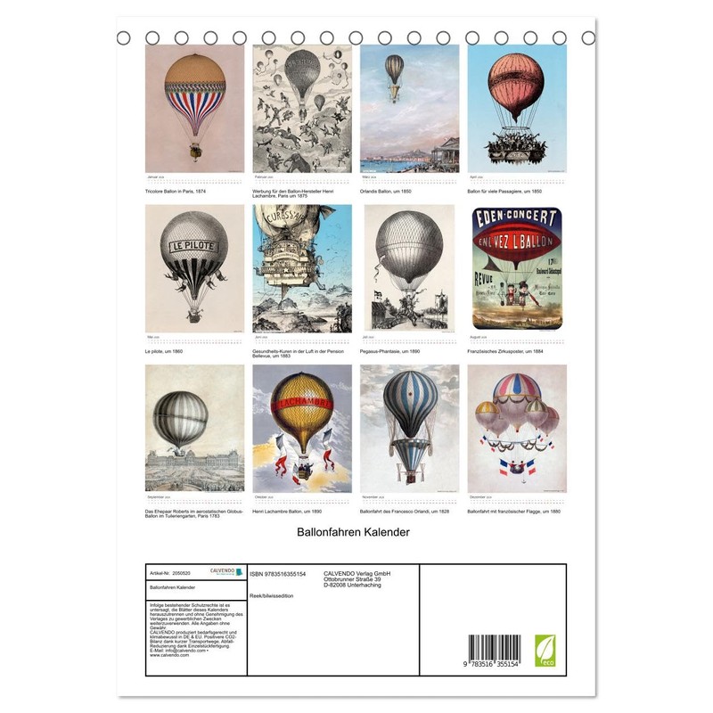 Ballooning Calendar (Desk Calendar 2026 DIN A5 High), CALVENDO Monthly Calendar