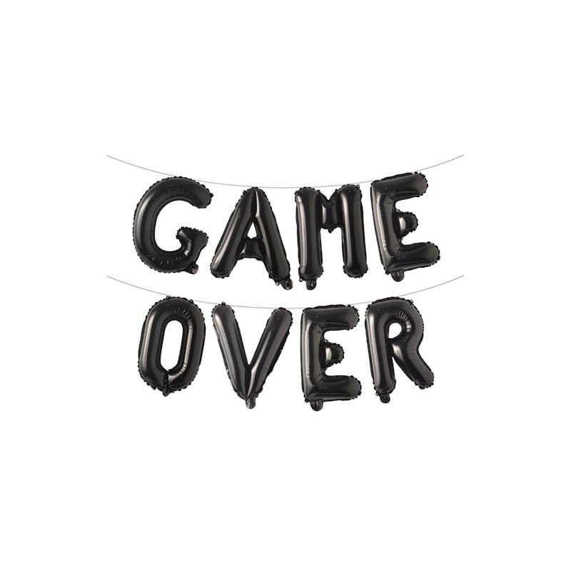 Balloons Banner Game Over Themed Party Decorations and Supplies Sign (GAME OVER Black)