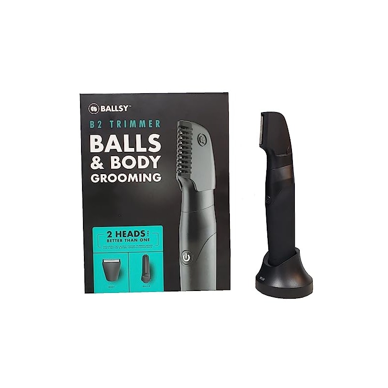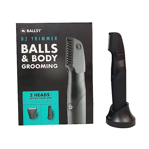 Ballsy B2 Groin & Body Trimmer for Men, Includes 2 Quick Change Heads, Waterproof, Cordless Charging Base for The Ultimate Close Shave