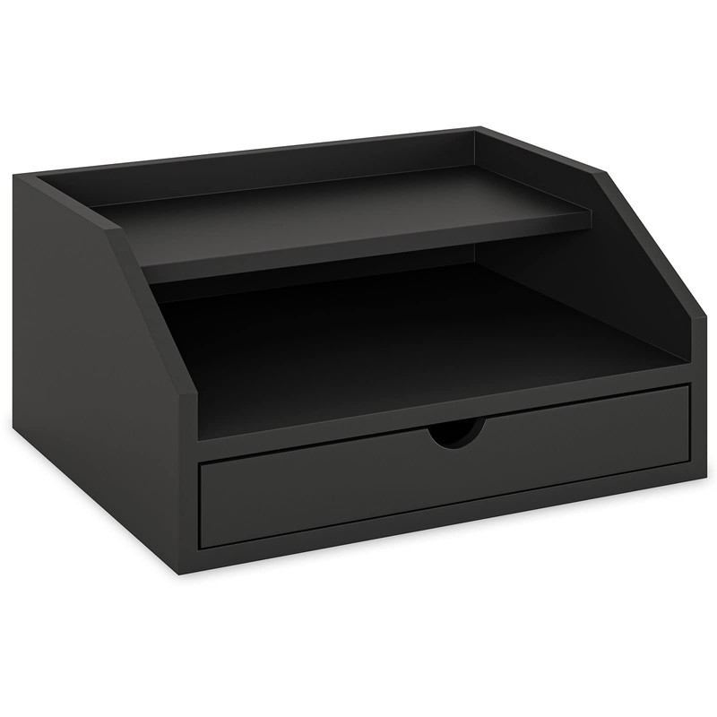 Ballucci Desk Organizer with Drawer, 2 Tier Paper Office Supplies Desk Organizer, 13 2/5" x 9 3/5" x 6", Black