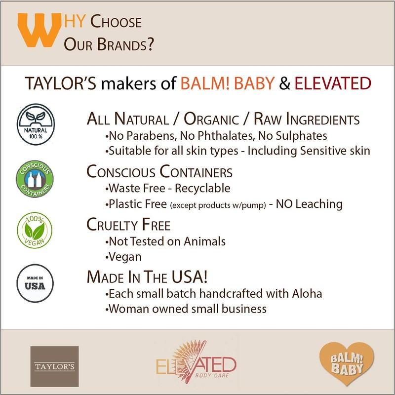 - HAND CRAFTED in small batches by Taylor’s Naturals (BALM! Baby and Elevated Body Care brands) in the USA - where high quality ingredients, sustainability and Good Manufacturing Practice (GMP) go hand-in-hand!