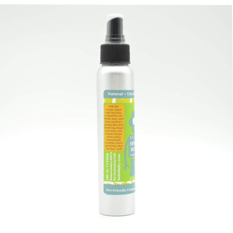 - NO MESSY HANDS: This is the convenient Sprayable, No-Rub formula of Balm! Baby Diaper Rash Balm. Stored in a 4oz recycled aluminum bottle with sprayer (all BALM! Baby products are in glass or aluminum containers). Use at home, on-the-go, at day care, and travel. (See separate listing for BALM! Baby Diaper Balm in Glass jar or Eco-Stick). For more Serious Diaper Rash, try BALM! Baby Mad Rash balm.