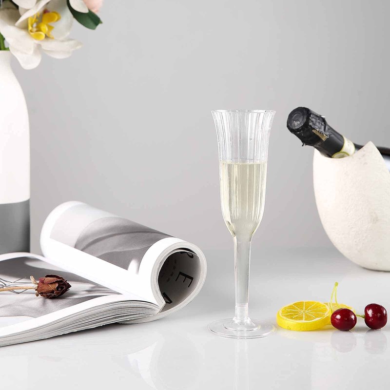 BalsaCircle 48 pcs 6 oz Clear Plastic Champagne Flute Glasses - Disposable Wedding Party Catering Tableware