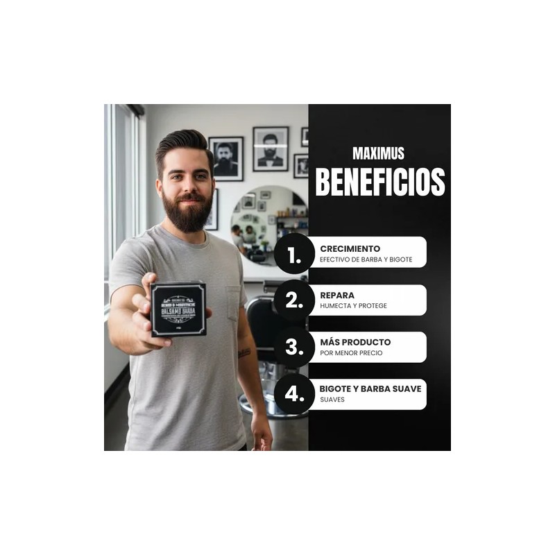 Maximus está aquí para ayudarte a destacar, ofreciéndote una barba que cause admiración y confianza. Haz clic en Comprar Ahora y recibe tu bálsamo en la puerta de tu casa con envío seguro y garantizado.