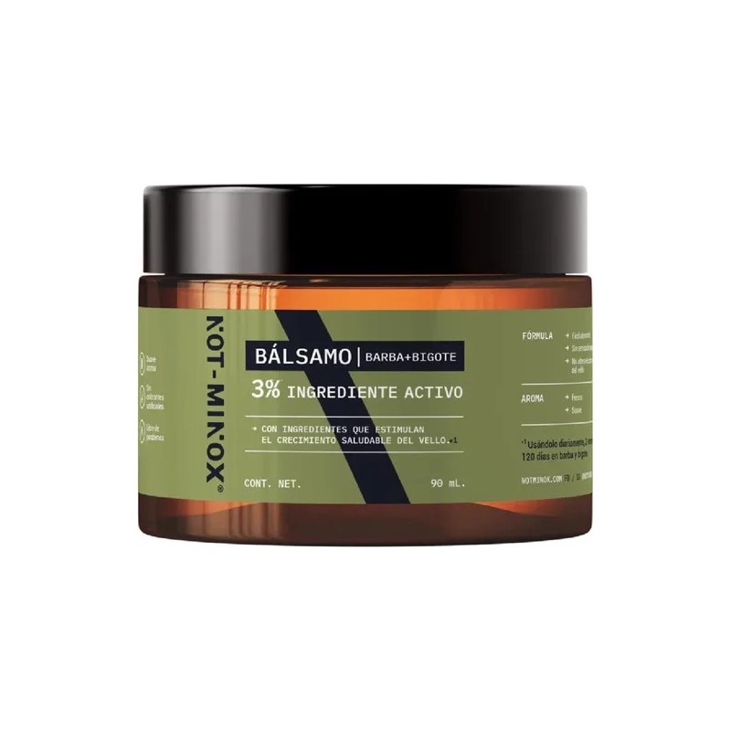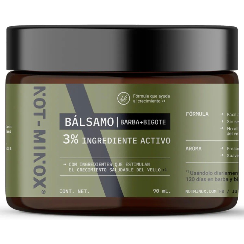 El Bálsamo para el Crecimiento de la Barba y Bigote NOT-MINOX es de la más alta calidad, hecho con los mejores estándares e ingredientes importados. Su envase de 90 ml tiene una duración de 2 a 4 meses de uso y no causa efectos secundarios. Además, tiene un aroma fresco y no afecta el color de tu barba.
