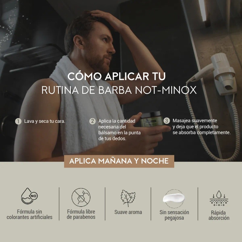 ¡Consigue la barba de tus sueños con el Bálsamo para el Crecimiento de la Barba y Bigote NOT-MINOX! Si estás buscando una solución efectiva para mejorar el crecimiento de tu vello facial, este producto es la respuesta perfecta.