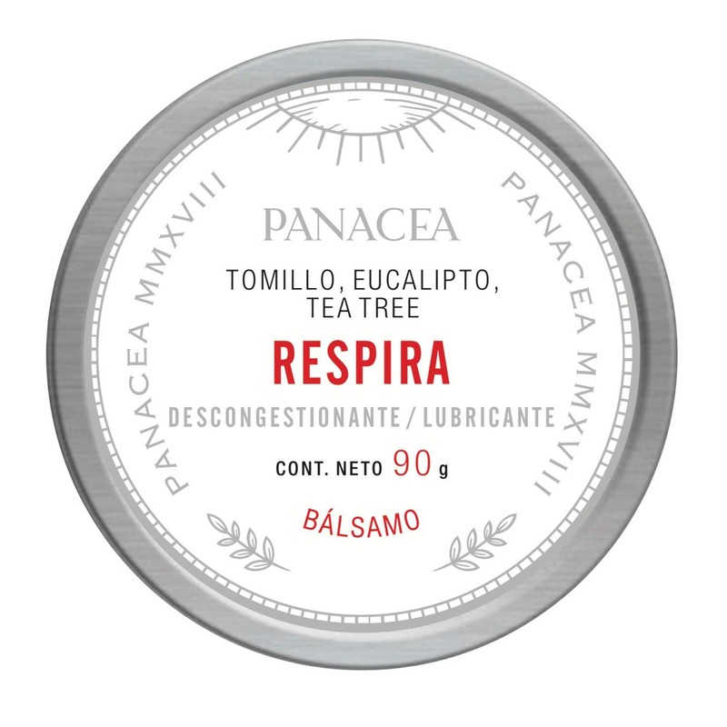 Bálsamo RESPIRA auxiliar en cuadros respiratorios con congestión y tos. 100% ingredientes naturales, sin químicos. Contiene aceites esenciales de tomillo, eucalipto y tea tree. 90g.