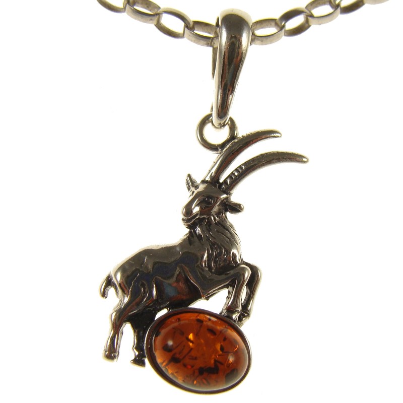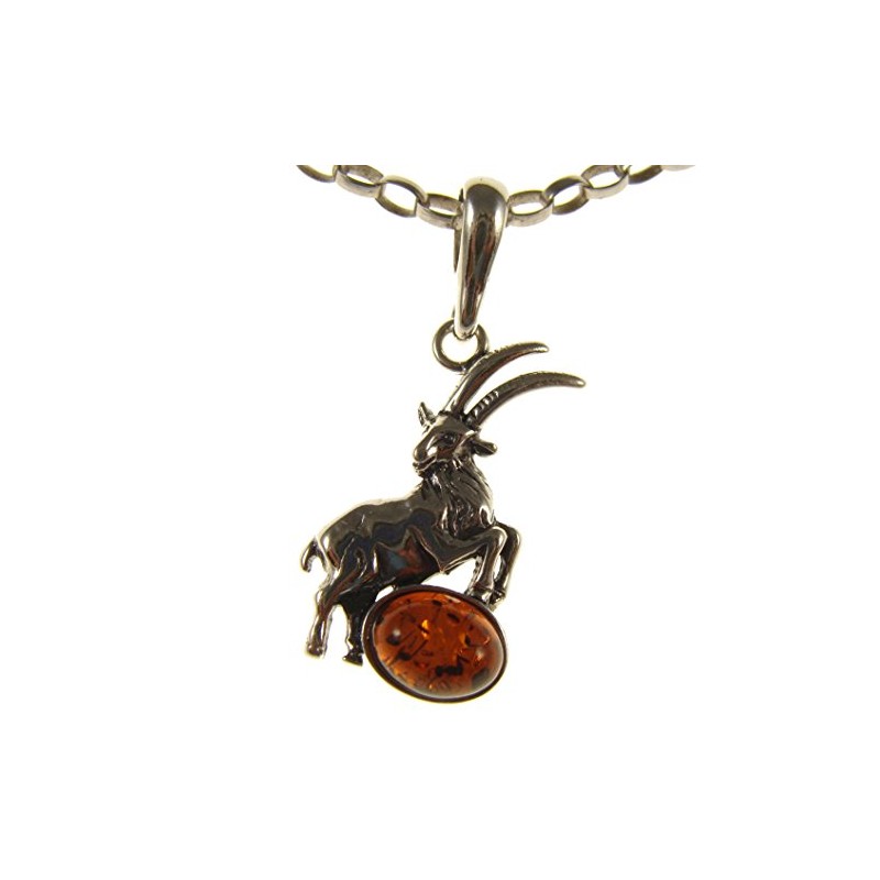 Baltic amber and sterling silver 925 cognac goat pendant (no chain)