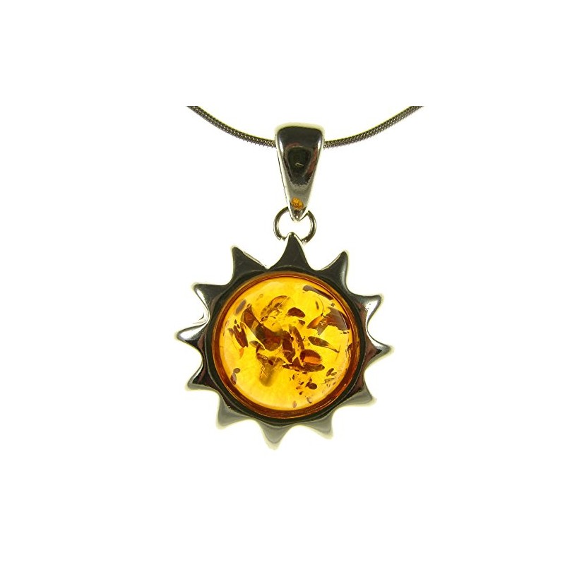 Baltic amber and sterling silver 925 cognac sun pendant (no chain)