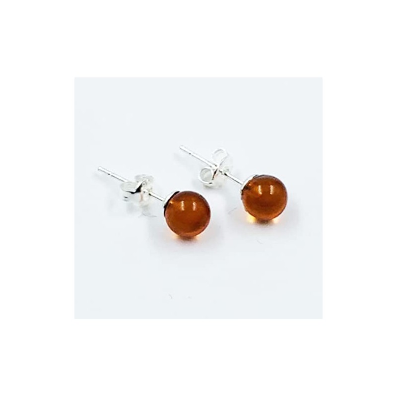 Baltic Amber Sterling Silver Small Stud Ball Earrings