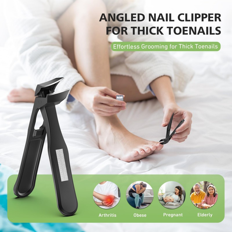 - 45° Slanted Blade Design: The 45° slanted, curved blade isn’t just stylish—it’s science! Designed to hug your nail’s contour, it reduces pressure on joints and eliminates awkward bending. Perfect for thick nails that defy ordinary clippers or arthritic hands craving ease.