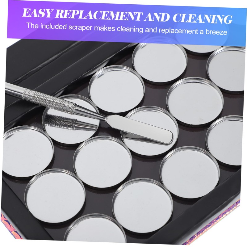 • Easy replacement and cleaning: the included scraper makes cleaning and replacement a breeze, ensuring that your makeup palette stays in condition,eyeshadow palette organizer,magnetic eyeshadow palette