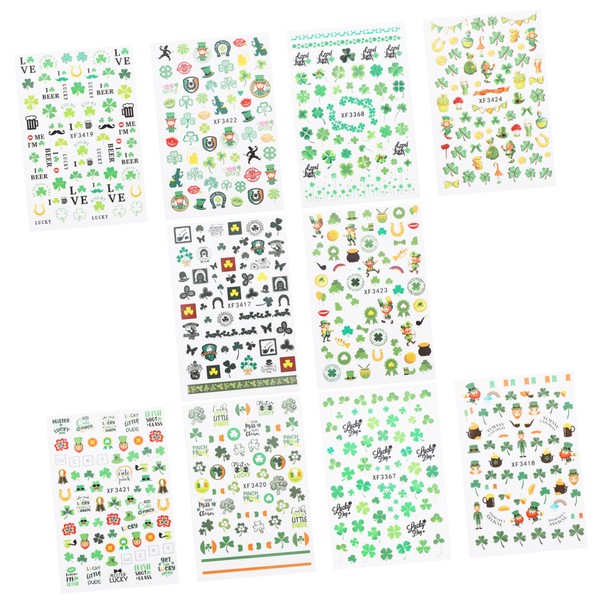 Baluue 10sheets Patrick's Day Nail Art Stickers of Creative Shamrock Nail Decals for Festive DIY Designs for Parties and Special Occasions