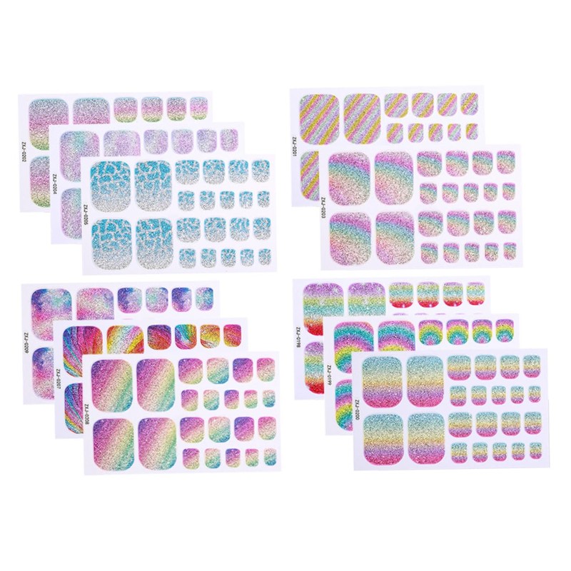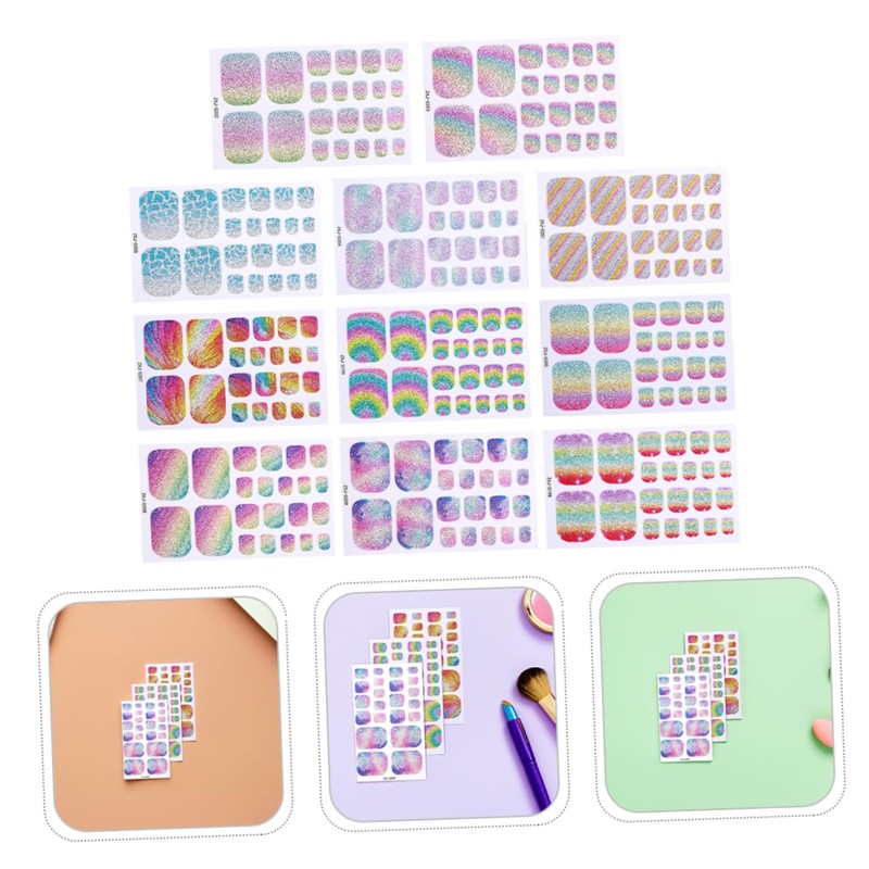 Baluue 11pcs Glitter Rainbow Toenail Stickers Easy DIY Nail Art Wraps for Pool Bath and Beach Stylish Full Coverage Nail Strips for Women