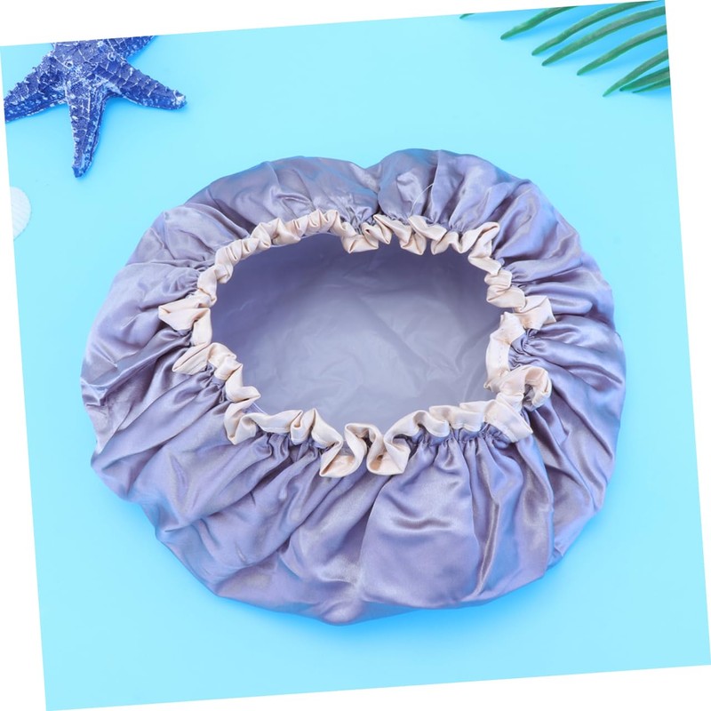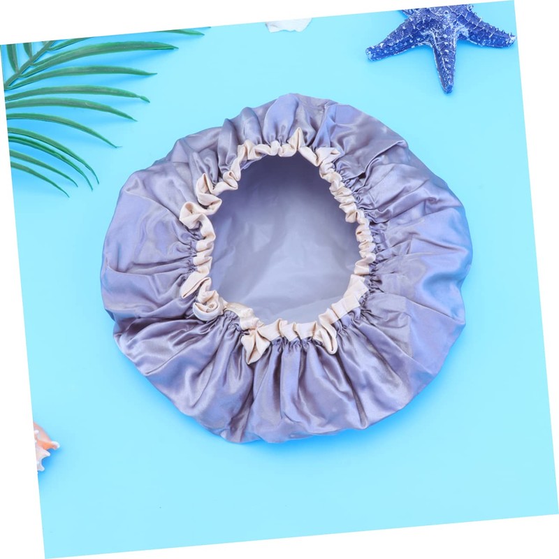 Baluue 1pc Double-layer Hair Shower Cap for Home and Salon Use for Hair during Baths and Treatments Grey Pe Design