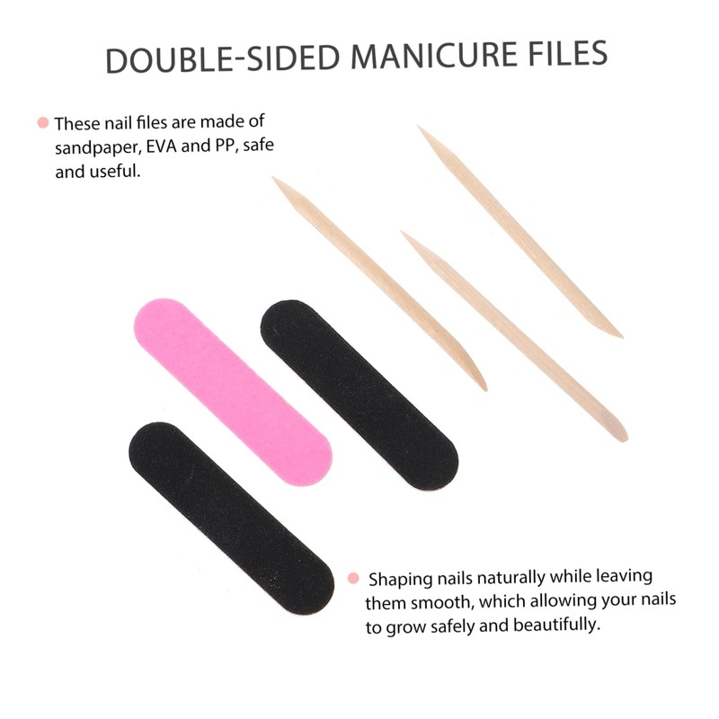 - These nail files are made of sandpaper, the cuticle stick is made of wood, and useful Manicure Files.