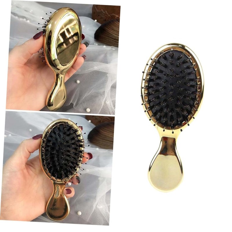 Baluue 2pcs Mini Hair Scalp Brush Boar Bristle Golden Hair Comb for Scalp Massage Lightweight and Portable