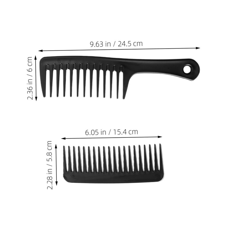 Baluue 2pcs Portable Wide Tooth Comb for Curly Long Hair Static Detangling Tool for Dry Wet Use for Women Men Black