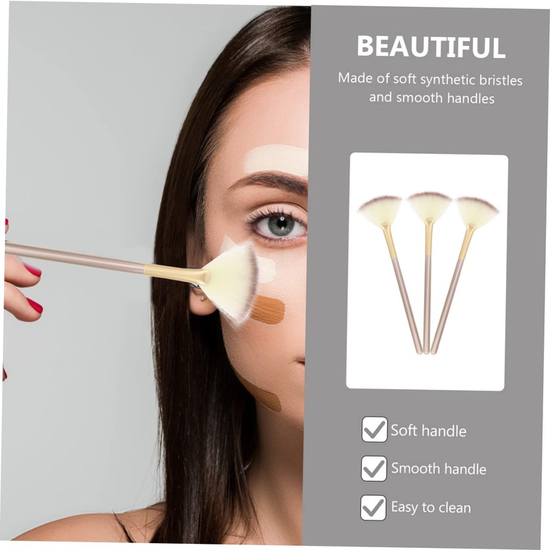 Baluue 2sets Makeup Kit 6 Brushes Contouring Powder Blush Fan Shape Manmade Fiber Smooth Surface Travel Size Safe Comfortable 3pcs*2