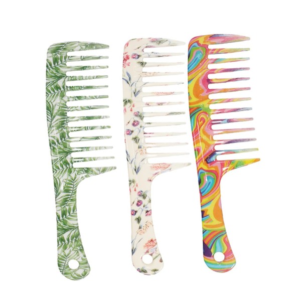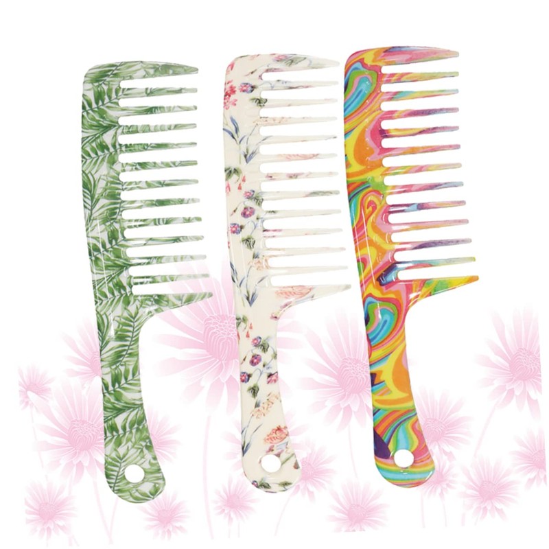 Baluue 3pcs Hair Combs Wide Tooth Scalp Comb for Men Women Fashion Printing Haircut Styling Tool Random Style